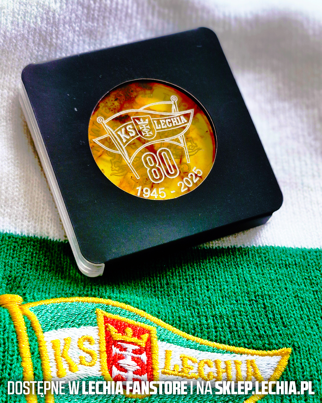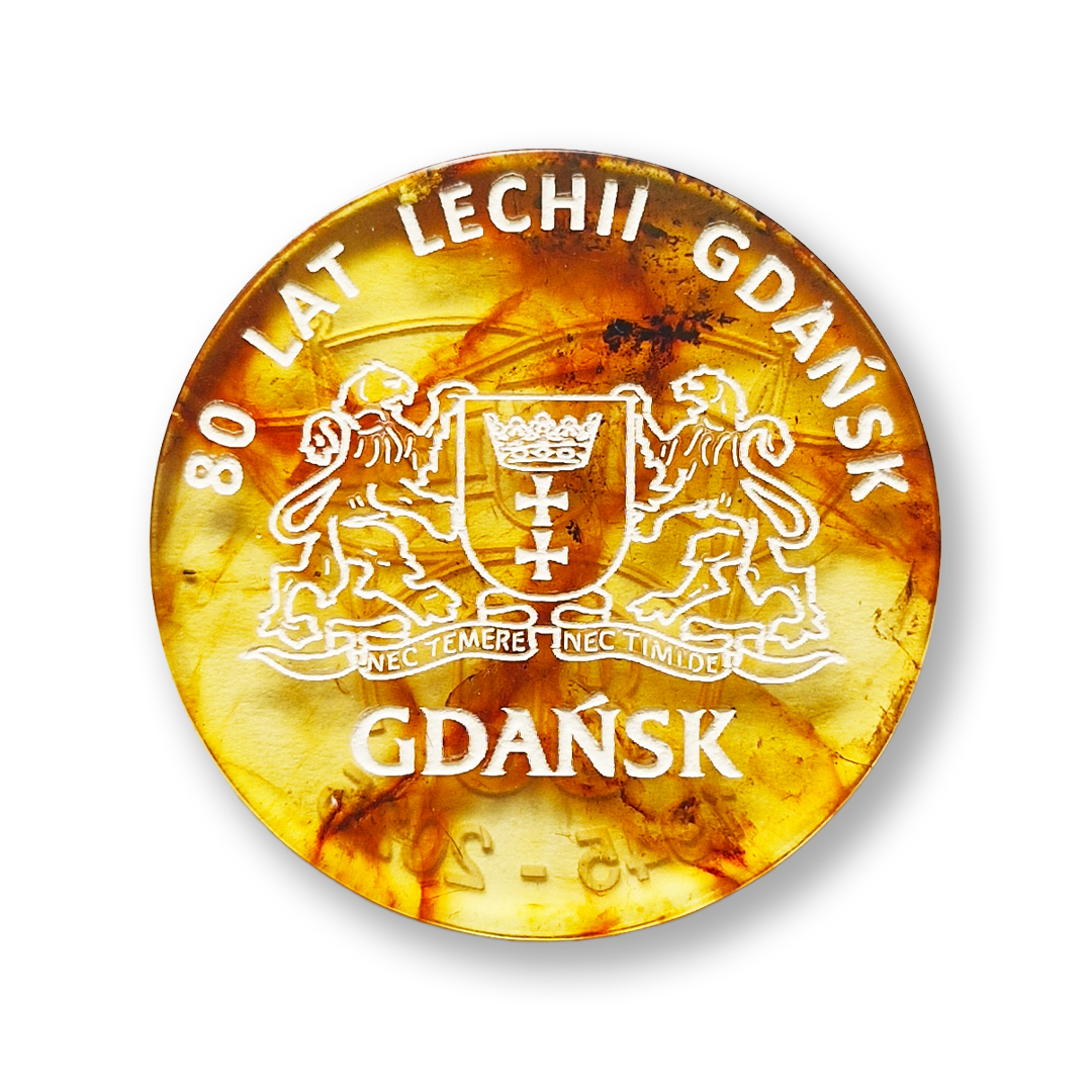 Bursztynowa moneta jubileuszowa na 80 lat Lechii Gdańsk